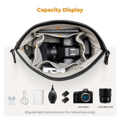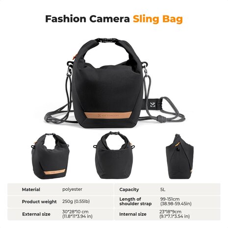 Camera Sling Bag suitable for compact cameras and small lenses.