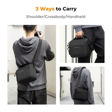 The Camera Sling Bag 8L enables you to take your camera and a small lens with you.