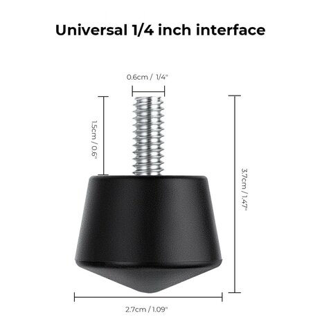 These tripod feet are screwed into the legs of your tripod using a 1/4 inch (0.6 cm) thread.